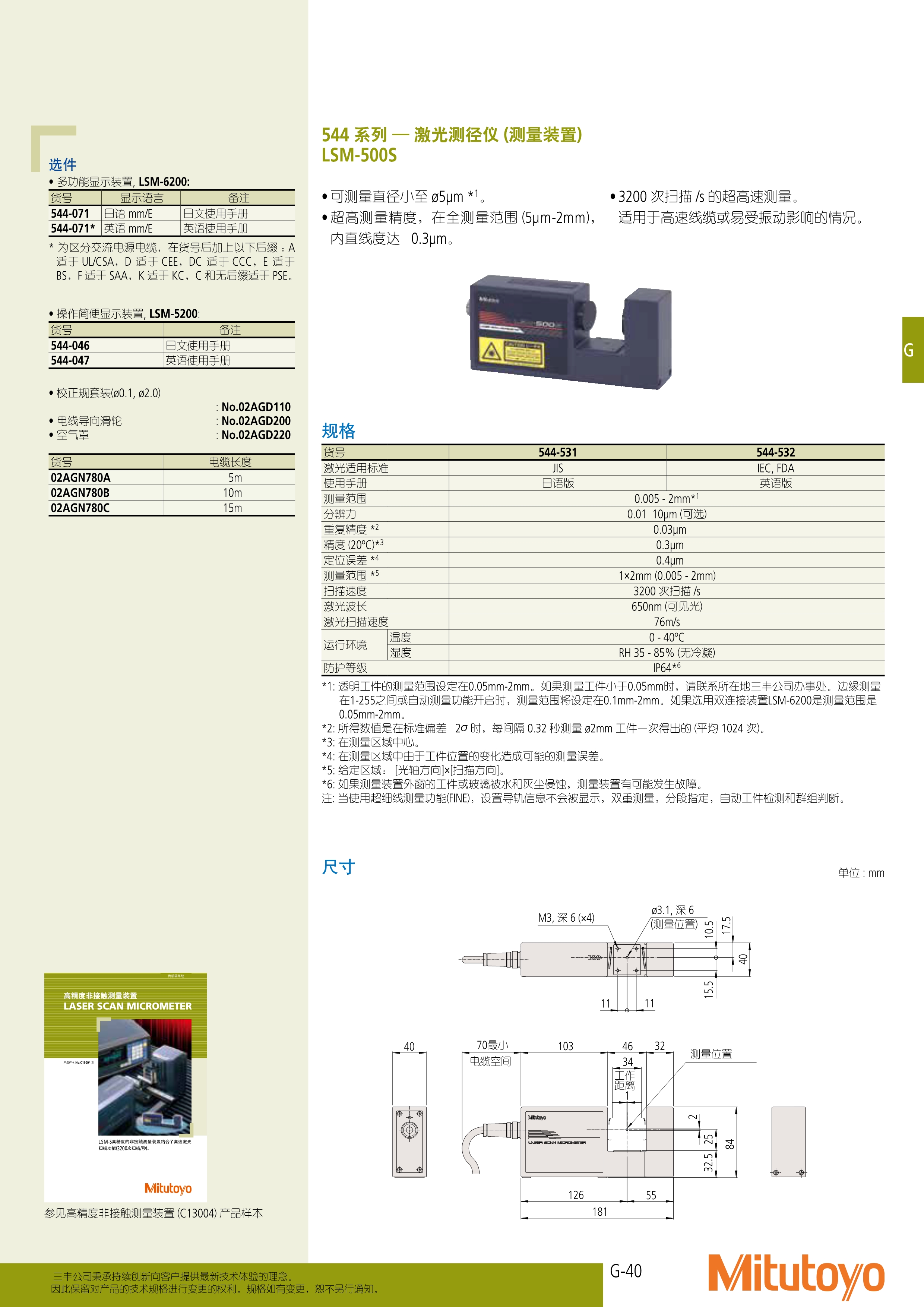 简述: 测量范围从1mm - 60mm。高测量精度,在全 测量范围内达±3µm。 • 在窄测量范围内达 ±(1.5+0.5ΔD)µm高测量精 度。 • 3200次扫描/s的超高速测量。 适用于高速线缆或易受振动影响的情况。