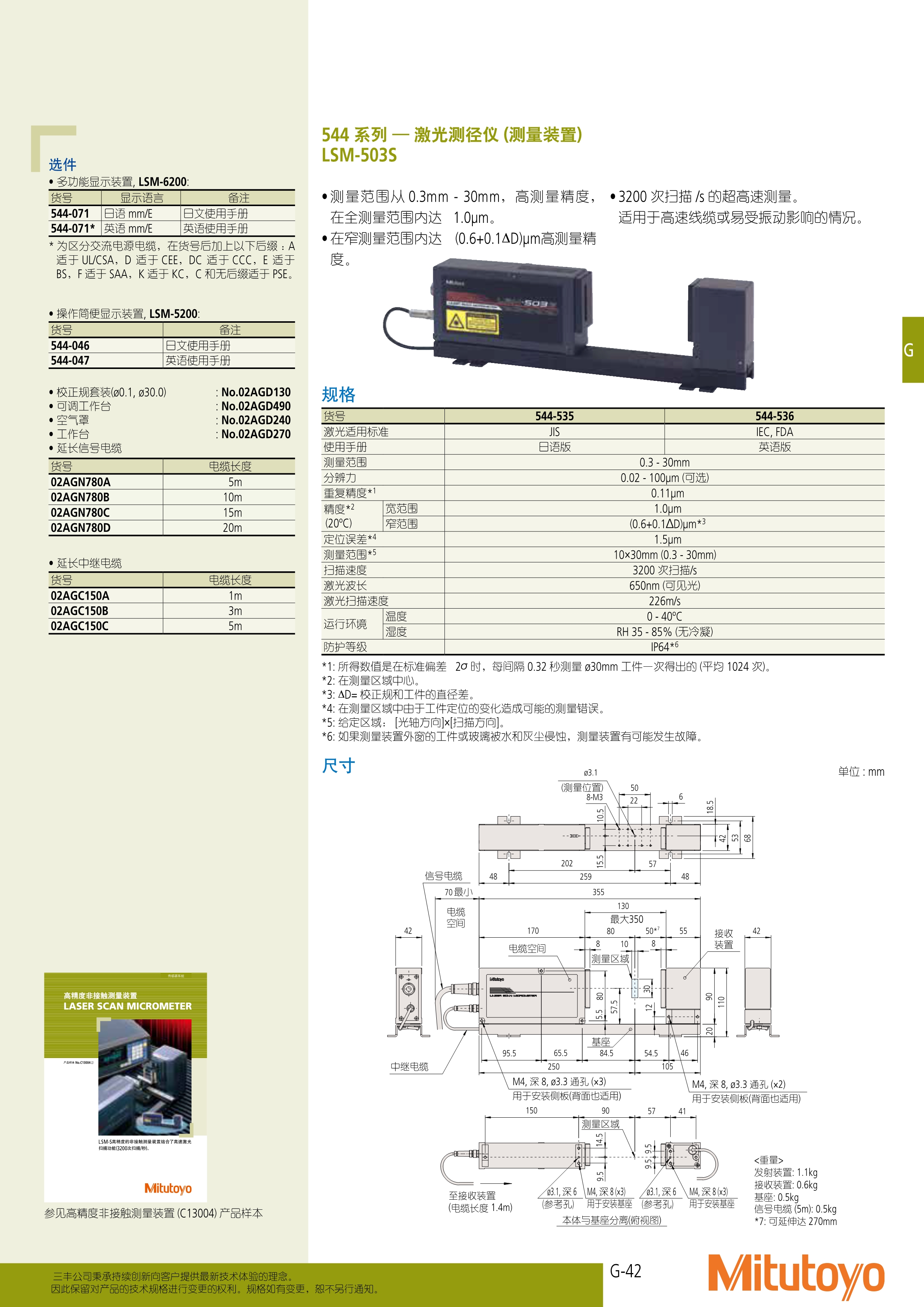 简述: • 测量范围从 0.3mm - 30mm,高测量精度, 在全测量范围内达 ±1.0µm。 • 在窄测量范围内达 ±(0.6+0.1∆D)µm高测量精 度。 • 3200 次扫描 /s 的超高速测量。 适用于高速线缆或易受振动影响的情况。