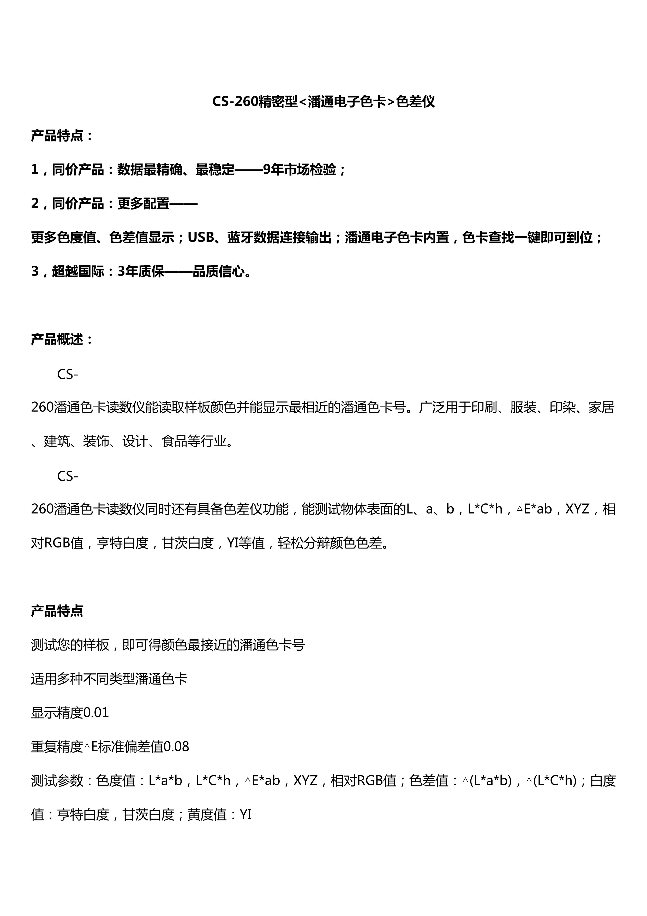 简述: 1,同价产品:数据最精确、最稳定——9年市场检验; 2,同价产品:更多配置——更多色度值、色差值显示;USB、蓝牙数据连接输出;潘通电子色卡内置,色卡查找一键即可到位; 3,超越国际:3年质保——品质信心。