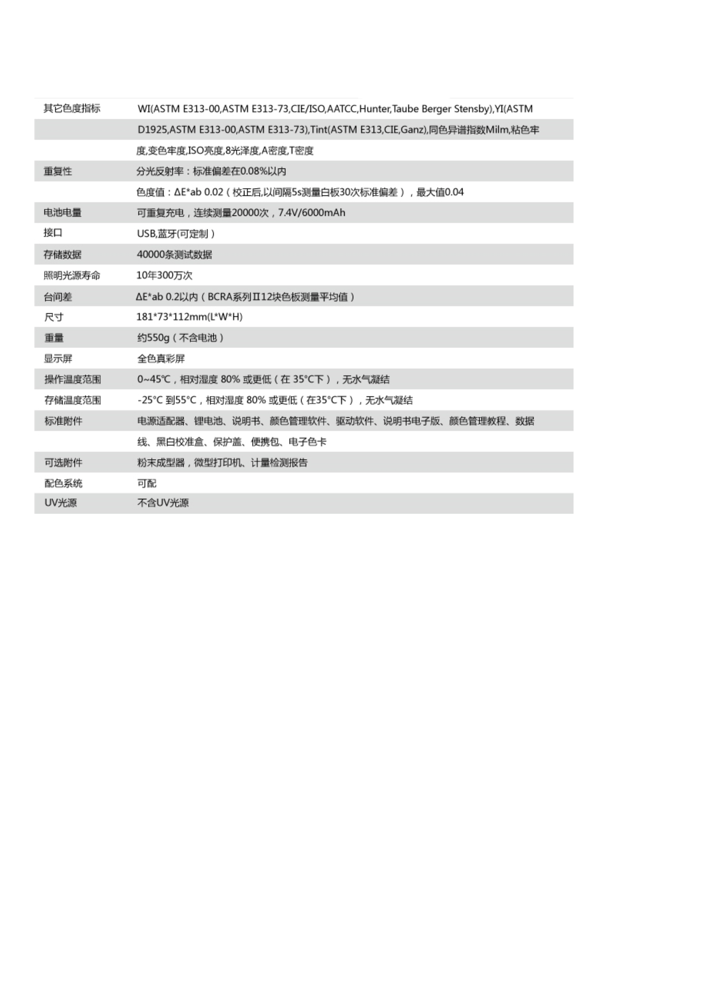 简述: ● 可用于实验室、工厂或现场操作,足以在几乎所有应用领域的质量控制中实现最佳的色彩测量; ● 更低的价格,获得高性能的分光颜色管理工具,满足中、小企业对高端仪器的迫切需求; ● 内置软件包含所有必要的色彩方程式、适合不同任务的标准光源,及大量特定行业及应用的指标; ● 操作系统支持中英文双语界面,且彩谱提供根据客户的实际需求进行界面语言的定制服务。